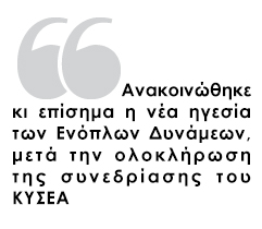 Έτσι, μετά τη σημερινή απόφαση του ΚΥΣΕΑ για την τοποθέτηση των αντιστρατήγων, αντιναυάρχων, αντιπτεράρχων, υποπτεράρχων και υποναυάρχων, η ηγεσία των Ενόπλων Δυνάμεων διαμορφώνεται ως εξής: