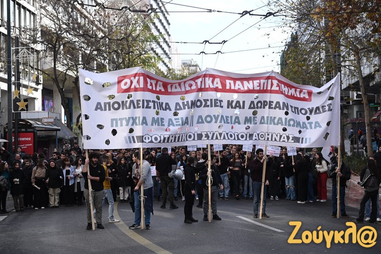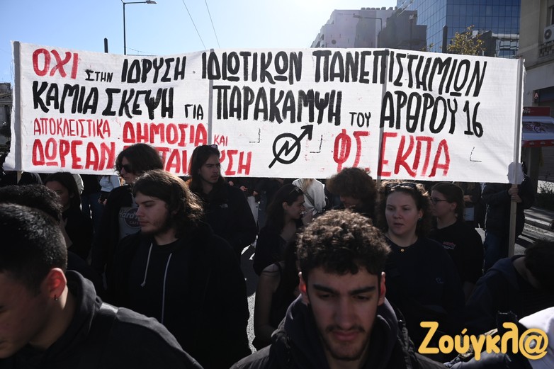 Σε εξέλιξη βρίσκεται αυτή την ώρα το πανεκπαιδευτικό συλλαλητήριο στο κέντρο της Αθήνας κατά των μη κρατικών πανεπιστημίων με τη συμμετοχή φοιτητών και μαθητών.