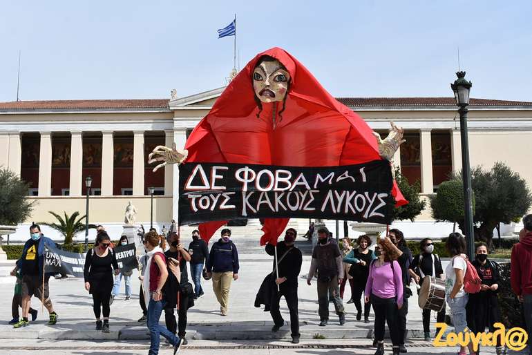 Πορεία διαμαρτυρίας πραγματοποίησαν στις 12 το μεσημέρι του Σαββάτου οι καλλιτέχνες στο κέντρο της Αθήνας για τον ένα χρόνο εκτός εργασίας λόγω πανδημίας. Οι καλλιτέχνες έδωσαν το «παρών» στα Προπύλαια και ξεκίνησαν την πορεία προς το Σύνταγμα με προορισμό τη Βουλή.