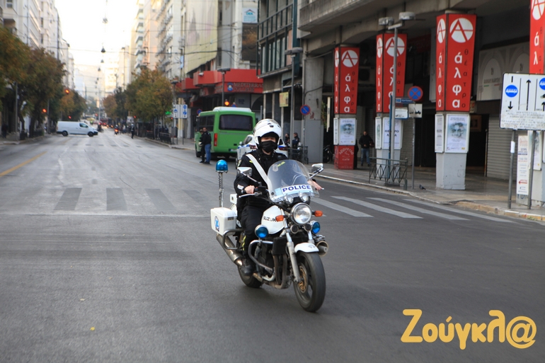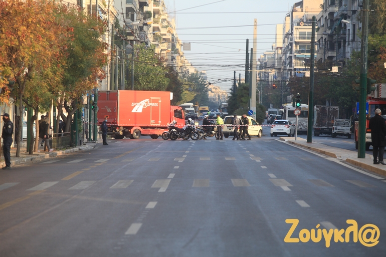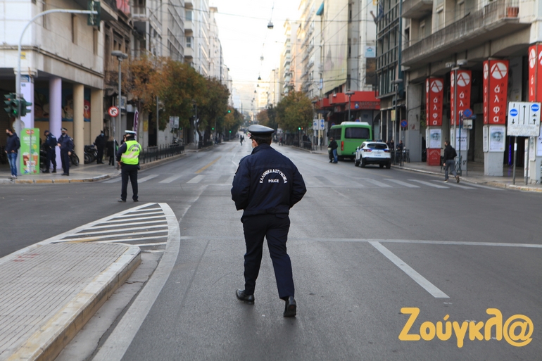 Κλειστές είναι η άνοδος και η κάθοδος της Πατησίων, ενώ αστυνομικοί ενημερώνουν τους οδηγούς για τους κλειστούς δρόμους και τις οδούς στις οποίες απαγορεύεται να κινηθούν με τα οχήματά τους.