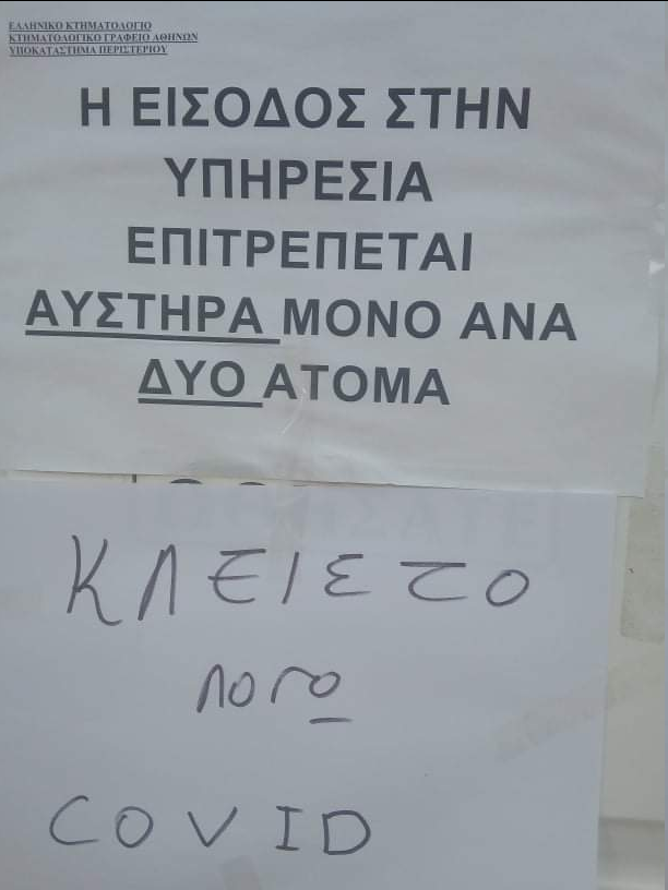 Δείτε το έγγραφο που ενημερώνει τους πολίτες ότι τα γραφεία θα παραμείνουν κλειστά λόγω Covid-19: