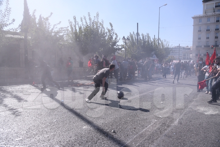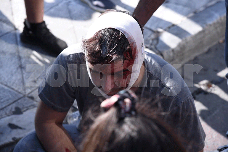 Ένας διαδηλωτής τραυματίστηκε κατά τη διάρκεια της πορείας των φοιτητών έπειτα από ρίψη χειροβομβίδας κρότου λάμψης μπροστά από τη Βουλή. Αμέσως μεταφέρθηκε στο ξενοδοχείο Μ. Βρετανία, προκειμένου να του παρασχεθούν οι πρώτες βοήθειες. Σύμφωνα με πληροφορίες, στο σημείο βρισκόταν ένας γιατρός, ο οποίος τον βοήθησε μέχρι να φτάσει το ΕΚΑΒ για να τον παραλάβει. Παράλληλα από τα επεισόδια τραυματίστηκε και ένας αστυνομικός.