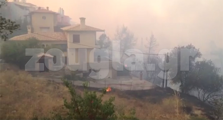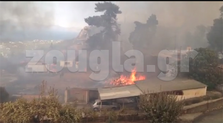 Με κατεύθυνση προς Καπανδρίτι και Γραμματικό μαίνεται η μεγάλη φωτιά που ξέσπασε το Σάββατο στον Κάλαμο και κατέκαψε στο πέρασμα της 20 σπίτια.