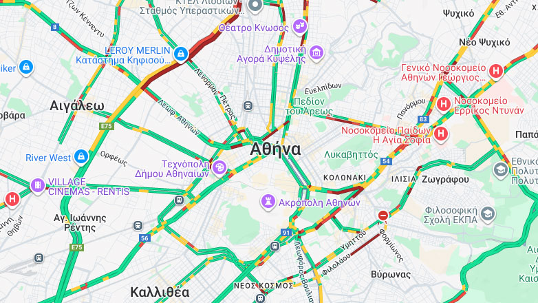 Παρόμοια εικόνα παρατηρείται και στο ρεύμα καθόδου, όπου η κίνηση ξεκινά από τη Μεταμόρφωση και φτάνει έως το Αιγάλεω. Αυξημένος κυκλοφοριακός φόρτος καταγράφεται επίσης στους δρόμους γύρω από το λιμάνι του Πειραιά, ενώ ιδιαίτερα επιβαρυμένη παραμένει η ανηφόρα του Καρέα προς την Κατεχάκη.