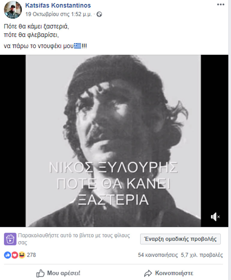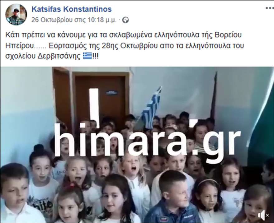 Τελευταία αναρτησή του το Facebοok ήταν την Παρασκευή 26/10/2018 με μια φωτογραφία απο το ελληνικό σχολείο της Δεβιτσάνης “Κάτι πρέπει να κάνουμε για τα σκλαβωμένα ελληνόπουλα τής Βορείου Ηπείρου…… Εορτασμός της 28ης Οκτωβρίου απο τα ελληνόπουλα του σχολείου Δερβιτσάνης”.