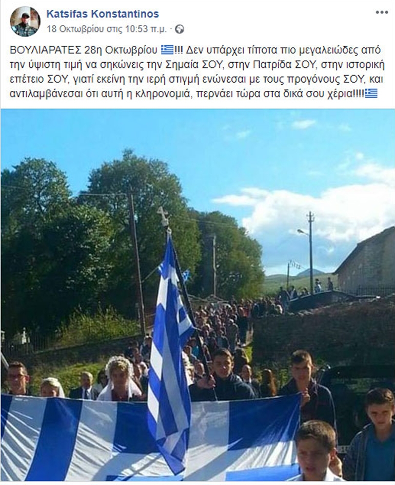 Σε προηγούμενη ανάρτησή του δημοσιεύει φωτογραφία από τον εορτασμό της 28ης Οκτωβρίου από προηγούμενο χρόνο.