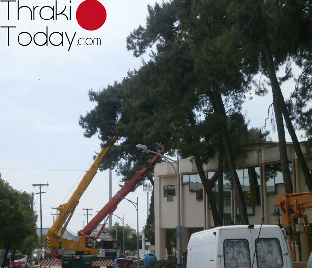 Στην κοπή δέντρων τα οποία κρίθηκαν από τις αρμόδιες Υπηρεσίες ως επικίνδυνα προχώρησαν το πρωί της Παρασκευής υπάλληλοι του Τμήματος Πρασίνου του Δήμου Κομοτηνής.