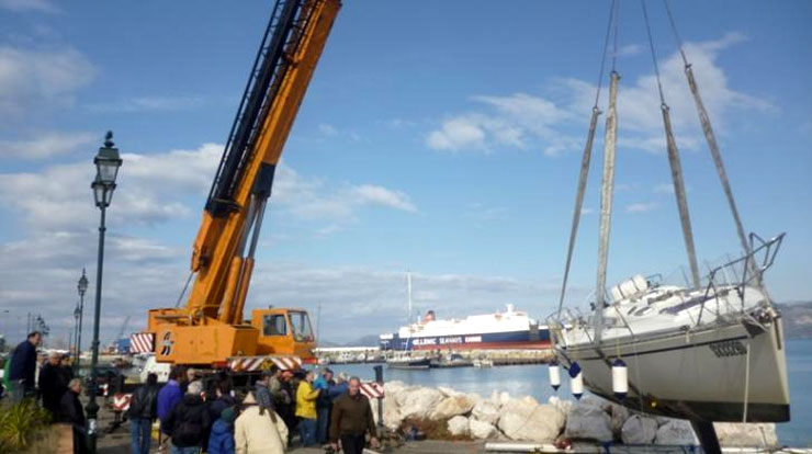 Για την ανέλκυση του σκάφους χρησιμοποιήθηκε γερανοφόρο όχημα.
