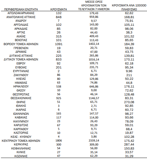 Υπενθυμίζεται, πως τα περισσότερα σε αριθμό περιστατικά που είχε καταγράψει ο ΕΟΔΥ μέχρι σήμερα σε μία ημέρα ανακοινώθηκαν την Τρίτη 4 Ιανουαρίου 2022, όταν εντοπίστηκαν 50.126 περιπτώσεις σε ένα 24ωρο. Επίσης, ο μεγαλύτερος αριθμός θανάτων εξαιτίας του ιού σε ένα 24ωρο καταγράφηκε το Σάββατο 14 Δεκεμβρίου 2021, όταν έχασαν τη ζωή τους 130 ασθενείς.