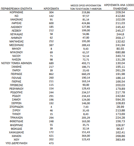 Οι νέοι θάνατοι ασθενών με COVID-19 είναι 77, ενώ από την έναρξη της επιδημίας έχουν καταγραφεί συνολικά 24.917 θάνατοι. Το 95,0% είχε υποκείμενο νόσημα ή/και ηλικία 70 ετών και άνω.