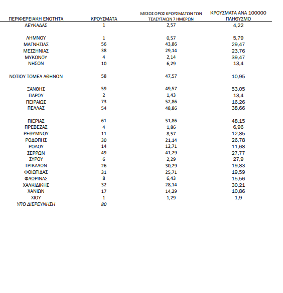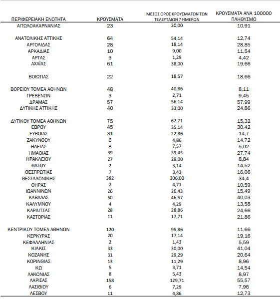 Η γεωγραφική κατανομή των περιστατικών είναι η ακόλουθη: