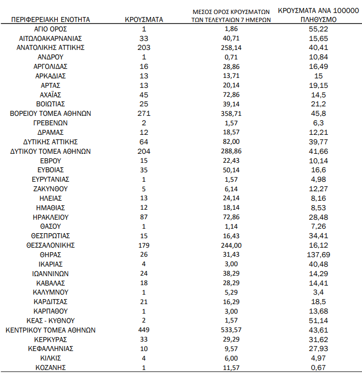 Υπενθυμίζεται πως τα περισσότερα σε αριθμό περιστατικά που είχε καταγράψει ο ΕΟΔΥ μέχρι σήμερα σε μία ημέρα ανακοινώθηκαν την Τρίτη 4 Ιανουαρίου 2022, όταν εντοπίστηκαν 50.126 περιπτώσεις σε ένα 24ωρο. Επίσης, ο μεγαλύτερος αριθμός θανάτων εξαιτίας του ιού σε ένα 24ωρο καταγράφηκε το Σάββατο 14 Δεκεμβρίου 2021, όταν έχασαν τη ζωή τους 130 ασθενείς.