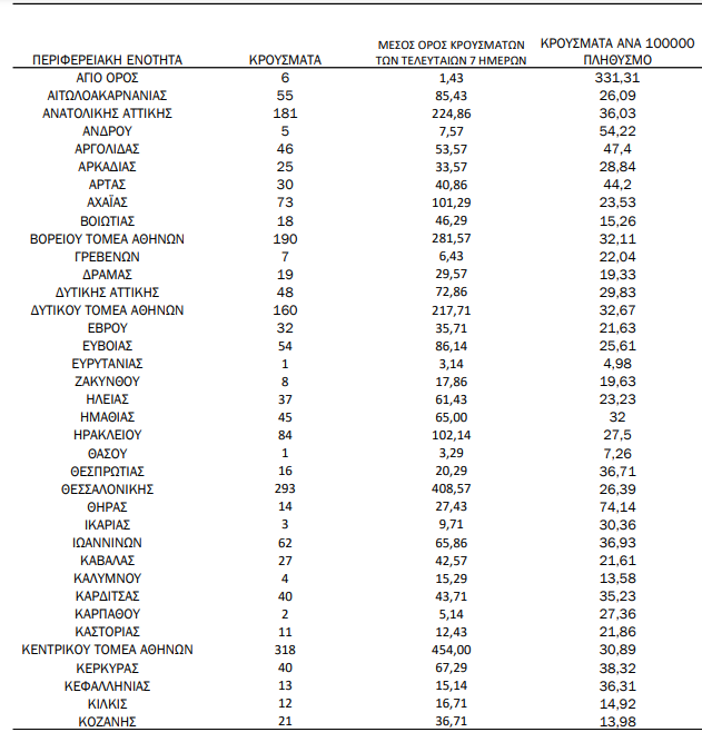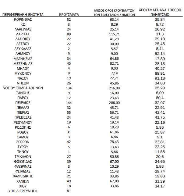 Δείτε τη γεωγραφική κατανομή των νέων περιστατικών:
