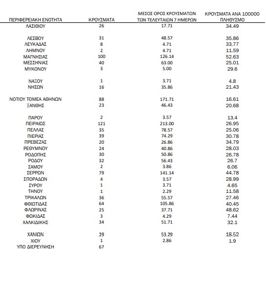 Η γεωγραφική κατανομή των περιστατικών είναι η ακόλουθη: