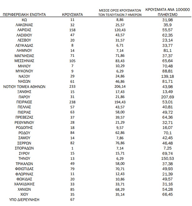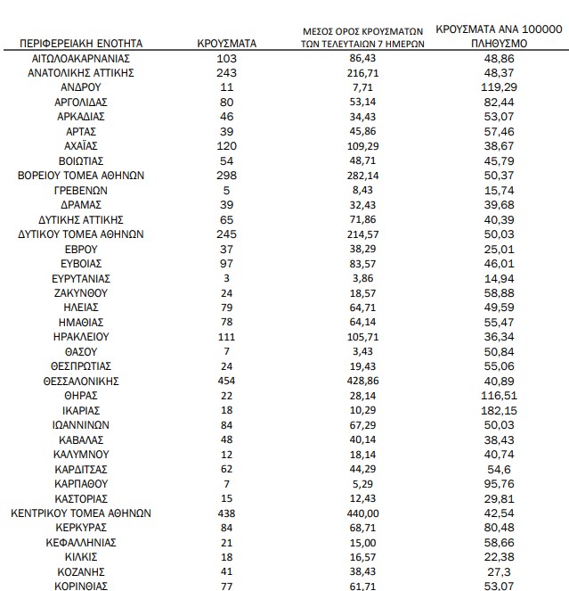 Υπενθυμίζεται πως τα περισσότερα σε αριθμό περιστατικά που είχε καταγράψει ο ΕΟΔΥ μέχρι σήμερα σε μία ημέρα ανακοινώθηκαν την Τρίτη 4 Ιανουαρίου 2022, όταν εντοπίστηκαν 50.126 περιπτώσεις σε ένα 24ωρο. Επίσης, ο μεγαλύτερος αριθμός θανάτων εξαιτίας του ιού σε ένα 24ωρο καταγράφηκε το Σάββατο 14 Δεκεμβρίου 2021, όταν έχασαν τη ζωή τους 130 ασθενείς.
