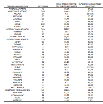 Τα νέα εργαστηριακά επιβεβαιωμένα κρούσματα της νόσου (άτομα) που καταγράφηκαν τις τελευταίες 24 ώρες ήταν 4.761. Ο συνολικός αριθμός των ατόμων που νόσησαν ανέρχεται σε 3.375.812 (ημερήσια μεταβολή +0,1%), εκ των οποίων 48,9% άνδρες.