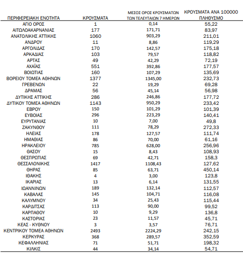 Υπενθυμίζεται, πως τα περισσότερα σε αριθμό περιστατικά που είχε καταγράψει ο ΕΟΔΥ μέχρι σήμερα σε μία ημέρα ανακοινώθηκαν την Τρίτη 4 Ιανουαρίου 2022, όταν εντοπίστηκαν 50.126 περιπτώσεις σε ένα 24ωρο. Επίσης, ο μεγαλύτερος αριθμός θανάτων εξαιτίας του ιού σε ένα 24ωρο καταγράφηκε το Σάββατο 14 Δεκεμβρίου 2021, όταν έχασαν τη ζωή τους 130 ασθενείς.