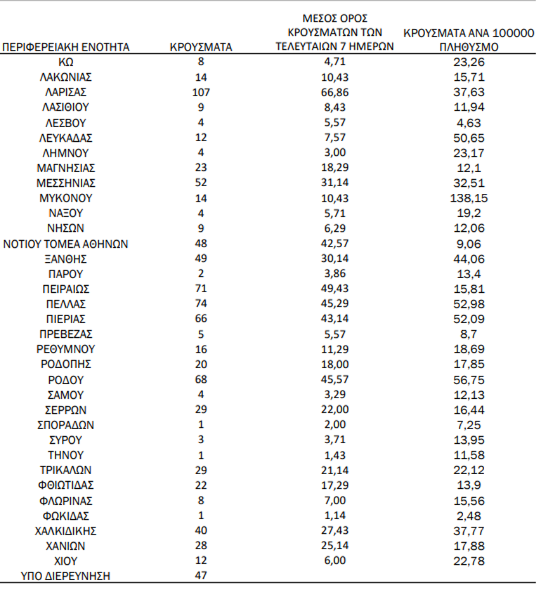 Οι νέοι θάνατοι ασθενών με COVID-19 είναι 37, ενώ από την έναρξη της επιδημίας έχουν καταγραφεί συνολικά 14.311 θάνατοι. 2 Το 95.4% είχε υποκείμενο νόσημα ή/και ηλικία 70 ετών και άνω.