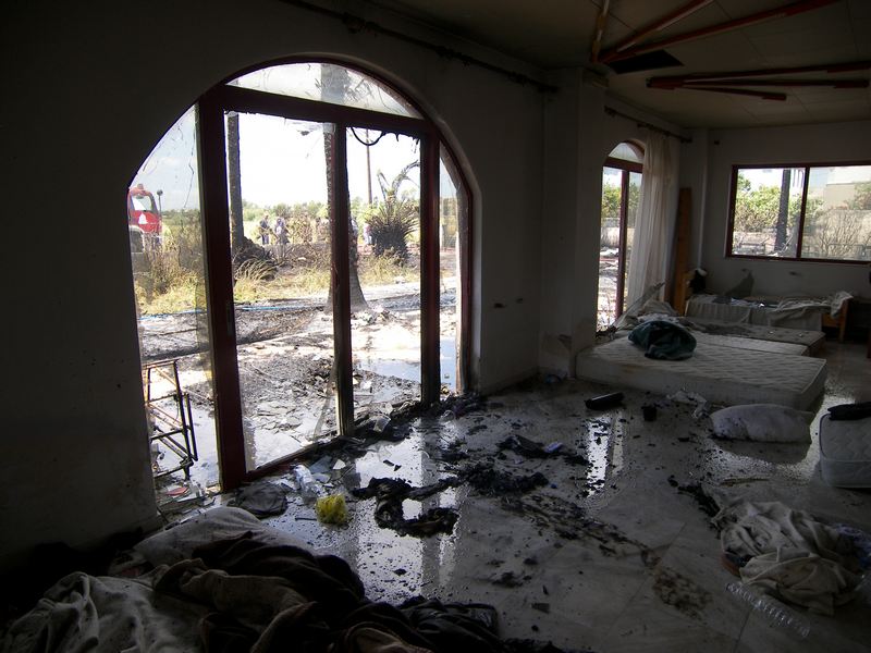 Ο Διοικητής της Πυροσβεστικής κ. Γιώργος Τσιάμης τόνισε ότι «η υπηρεσία ειδοποιήθηκε γύρω στις 12.30 από τους εθελοντές του Ερυθρού Σταυρού που ήταν μαζί με τους μετανάστες. Αρχικά μας είπαν για κάποιον φοίνικα. Αν και ήμασταν πολύ κοντά, η φωτιά επεκτάθηκε πάρα πολύ γρήγορα, στην είσοδο του ξενοδοχείου, στο χώρο συγκέντρωσης μέσα και στον περιβάλλοντα χώρο του ξενοδοχείου που ήταν τα κρεβάτια, στρώματα και βέβαια απείλησε και διπλανή κατοικία».
