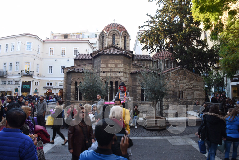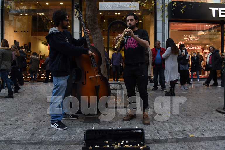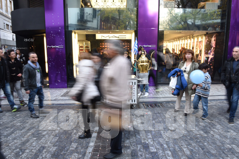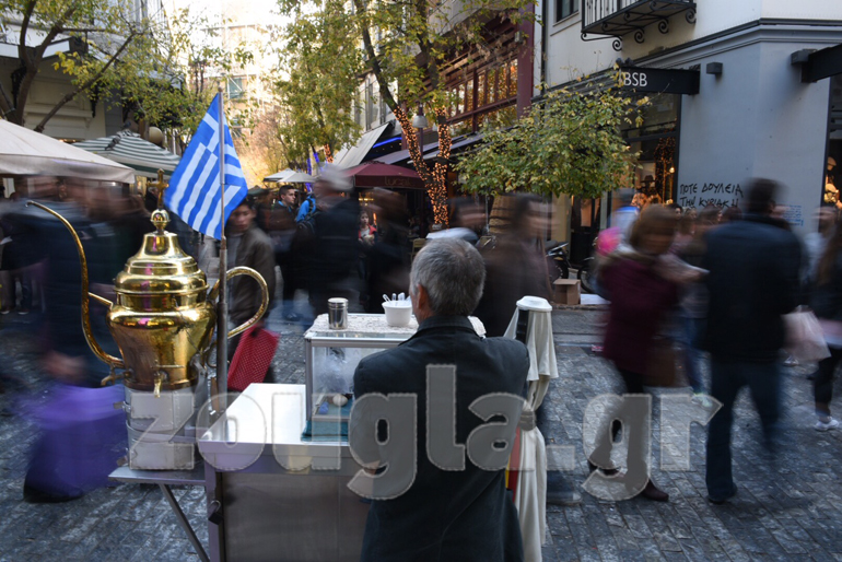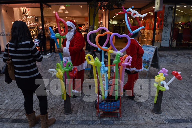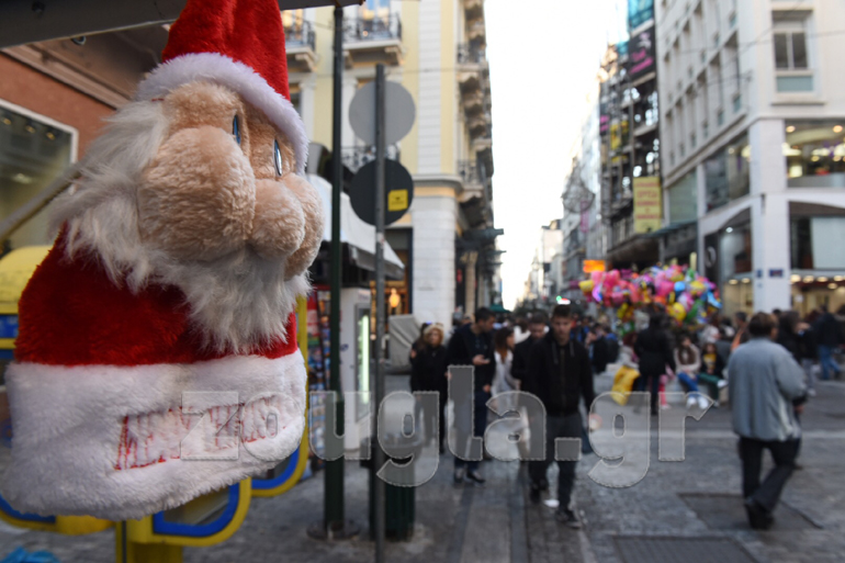 Στην Ερμού επικράτησε ένα μικρός… χαμός: Γονείς με τα παιδιά τους στα χέρια, αλλά και ηλικιωμένοι προσπαθούν να ευχαριστηθούν τις γιορτινές στιγμές και να απολαύσουν τον ήλιο πριν… την κακοκαιρία της Τετάρτης