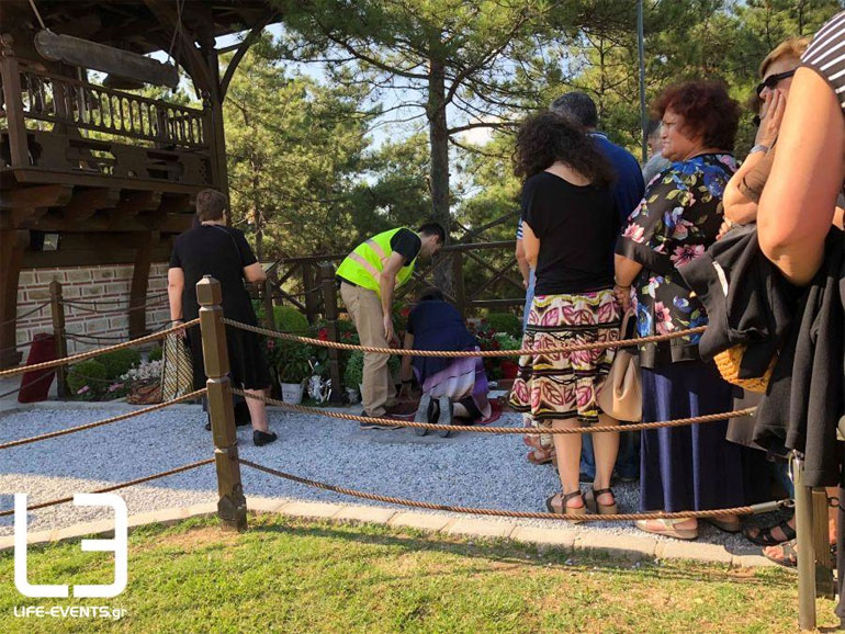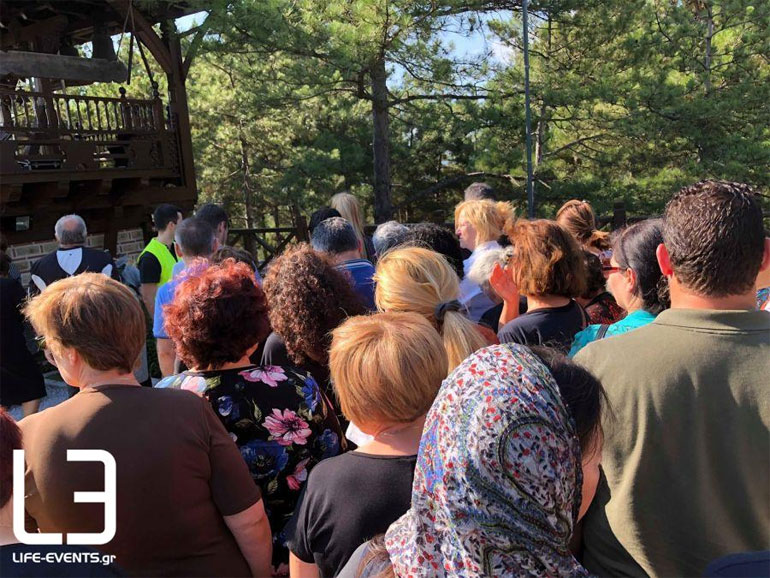 Για άλλη μια χρονιά, οι πιστοί μεταφέρονται στο Ησυχαστήριο με μικρά πουλμανάκια, παρκάροντας τα αυτοκίνητά τους έξω από τον χώρο.