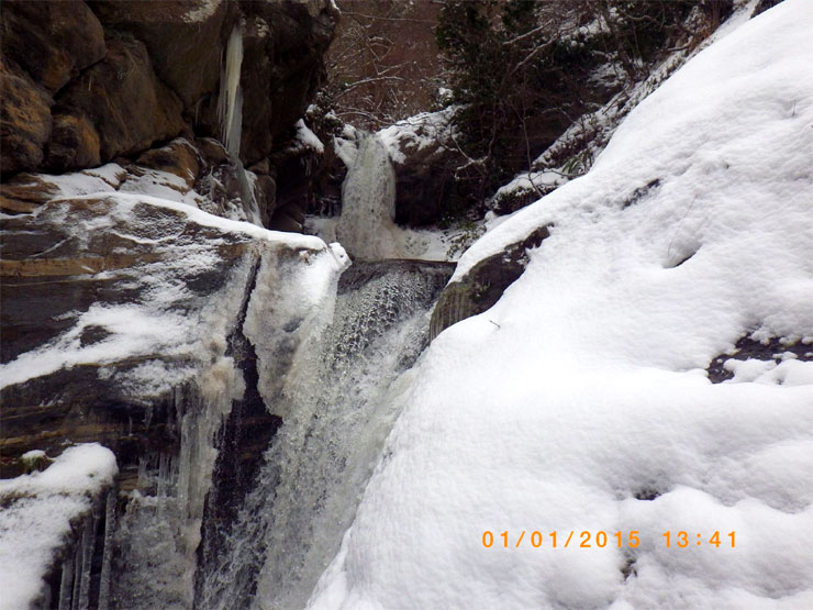 Όμορφες εικόνες αντίκρισαν την πρώτη ημέρα του νέου χρόνου όσοι επισκέφτηκαν τον καταρράκτη «Σκεπασμένο» Βελβεντού Κοζάνης στη ρίζα των δυτικών Πιερίων στην είσοδο του ρέματος της Λάφιστα.