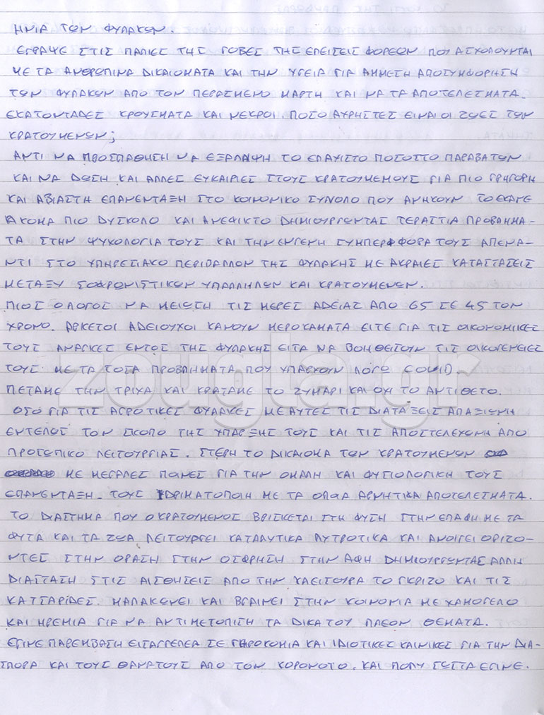 Κραυγή αγωνίας βγάζει μέσα από τις φυλακές ένας κρατούμενος με αφορμή τις αλλαγές στις άδειες και τις μεταγωγές σε αγροτικά καταστήματα.