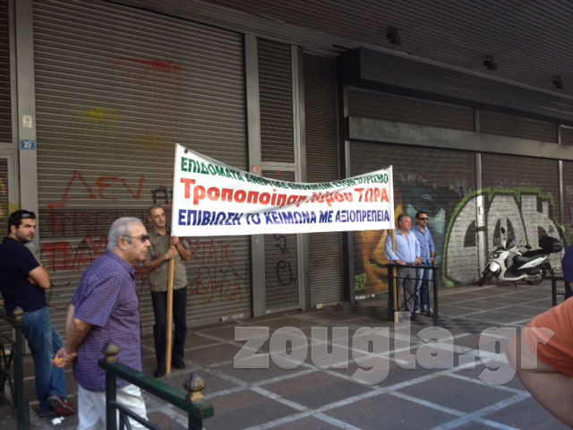 Η παράσταση διαμαρτυρίας πραγματοποιήθηκε στην οδό Σταδίου 29 στις 12.00 το μεσημέρι, χωρίς να σημειωθούν απρόοπτα.