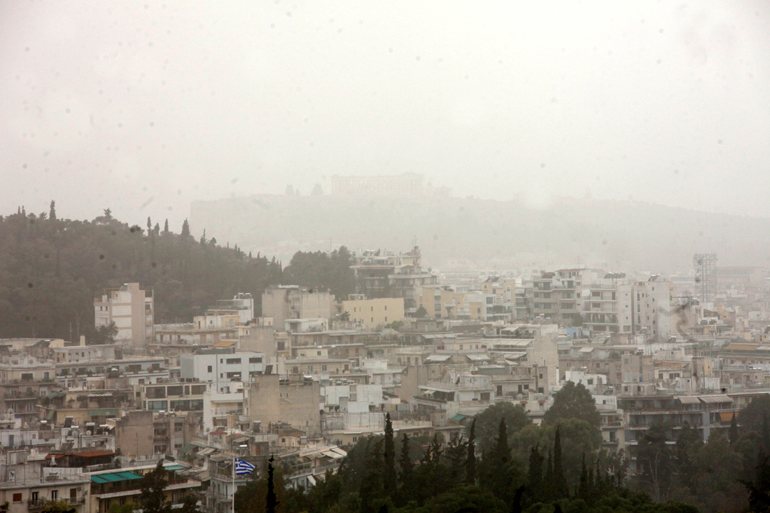 Υψηλές συγκεντρώσεις μικροσωματιδίων από σκόνη της Αφρικής παρατηρούνται σε αρκετές περιοχές της Νότιας και κεντρικής Ελλάδας αλλά και στην Αττική εξαιτίας των νοτίων ανέμων. Ο ουρανός σε όλες σχεδόν τις περιοχές στα κεντρικά και τα νότια έχει καφέ ή γκρι χρώμα, με την ατμόσφαιρα να είναι μουντή και θολή.