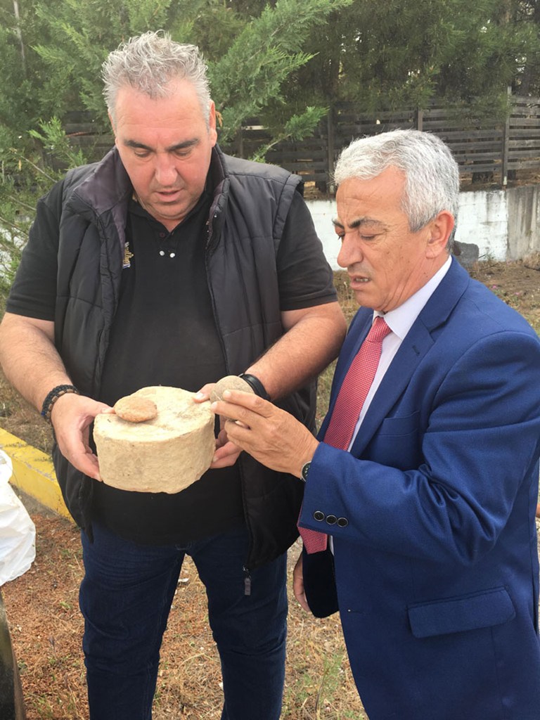 - Μια λίθινη σφαιρική τάπα διαμέτρου 14 εκ.