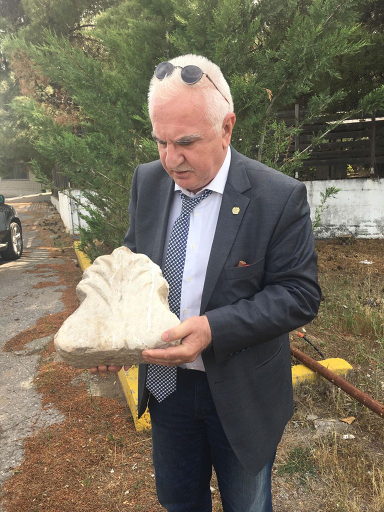 - Ένα λίθινο ανθέμιο επίστεψης στήλης με ύψος 25 εκ. και μήκος 27 εκ.