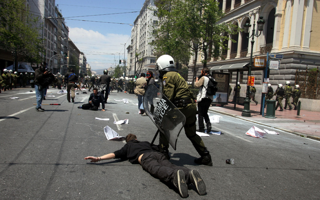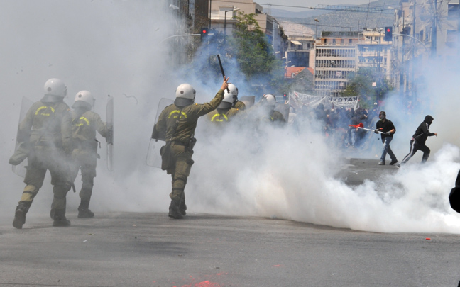 Πάντως, ακόμη μια πορεία ενάντια στα μέτρα λιτότητας αμαυρώθηκε από επεισόδια. Στο νοσοκομείο μεταφέρθηκαν συνολικά 11 τραυματίες.