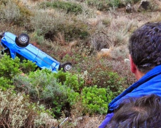Πρόκειται για το σοβαρό τροχαίο δυστύχημα, κατά το οποίο τρεις γυναίκες και ένας άνδρας (οδηγός) έπεσαν με το αυτοκίνητο γκρεμό με αποτέλεσμα να εγκλωβιστούν σε αυτό.
