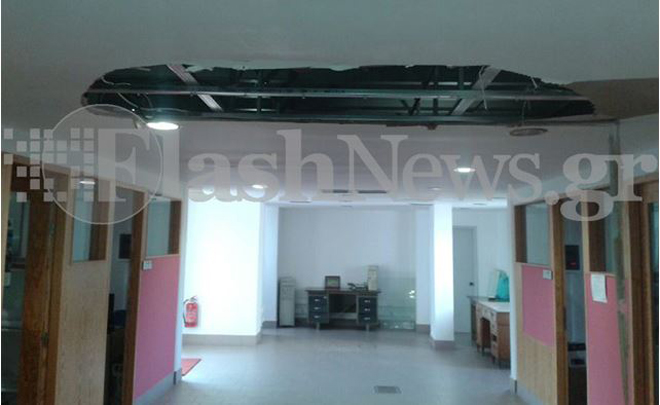 Από τύχη δεν τους έπεσε το ταβάνι στο κεφάλι. Και λέμε από τύχη, γιατί το ταβάνι έπεσε, απλώς έτυχε να συμβεί το Σαββατοκύριακο που οι εργαζόμενοι έλειπαν από την διεύθυνση αγροτικής ανάπτυξης στην Αγιά Χανίων.