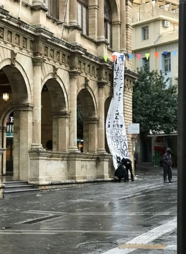 Οι αντιεξουσιαστές, οι οποίοι δεν επέτρεψαν ούτε στους εργαζομένους αλλά ούτε και στον δήμαρχο Βασίλη Λαμπρινό να εισέλθουν στο κτήριο, με αυτήν τους την ενέργεια συμπαρίστανται στον κρατούμενο Σπύρο Χριστοδούλου, ο οποίος πραγματοποιεί απεργία πείνας.