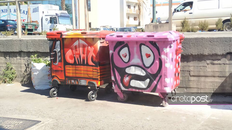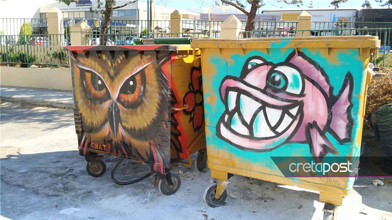 Σε μικρά έργα τέχνης έχουν μετατραπεί κάδοι απορριμμάτων σε κεντρικό σημείο του Ηρακλείου.