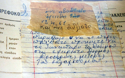 «Παρακαλώ να το περιποιηθείτε. Πρόκειται να το ξαναπάρω το παιδί μου. Σας ευχαριστώ θερμά προσωρινές μητέρες του σπλάχνου μου».
