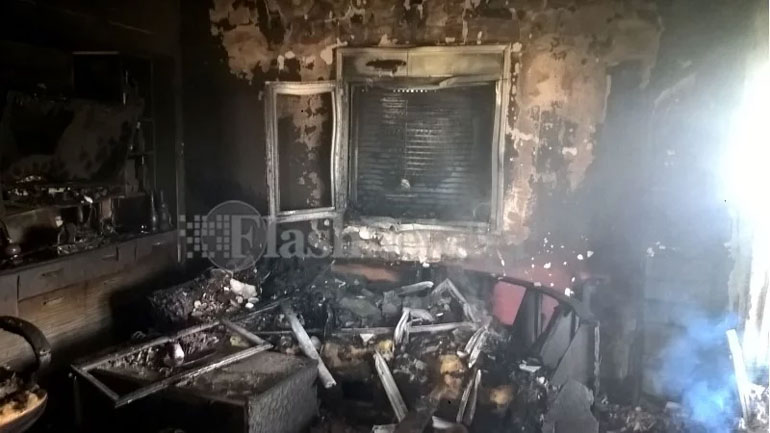 Τελικά, οι πυροσβέστες κατάφεραν να περιορίσουν την φωτιά στα δύο αυτά δωμάτια, τα οποία, όπως φαίνεται και στις φωτογραφίες, υπέστησαν μεγάλη καταστροφή.