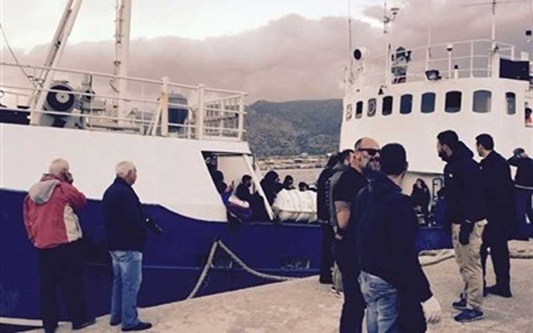 Άνδρες του λιμενικού ανέβηκαν στο σκάφος και το οδήγησαν στο λιμάνι της Παλαιόχωρας. Στο σημείο έσπευσαν γιατροί για να εξετάσουν τους μετανάστες.