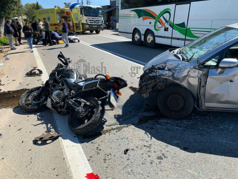 Τροχαίο ατύχημα σημειώθηκε λίγο μετά τις 11 το πρωί του Σαββάτου στο Αρώνι Ακρωτηρίου, όταν ένα αυτοκίνητο, κάτω από άγνωστες μέχρι στιγμής συνθήκες, συγκρούστηκε με ένα δίκυκλο μεγάλου κυβισμού.