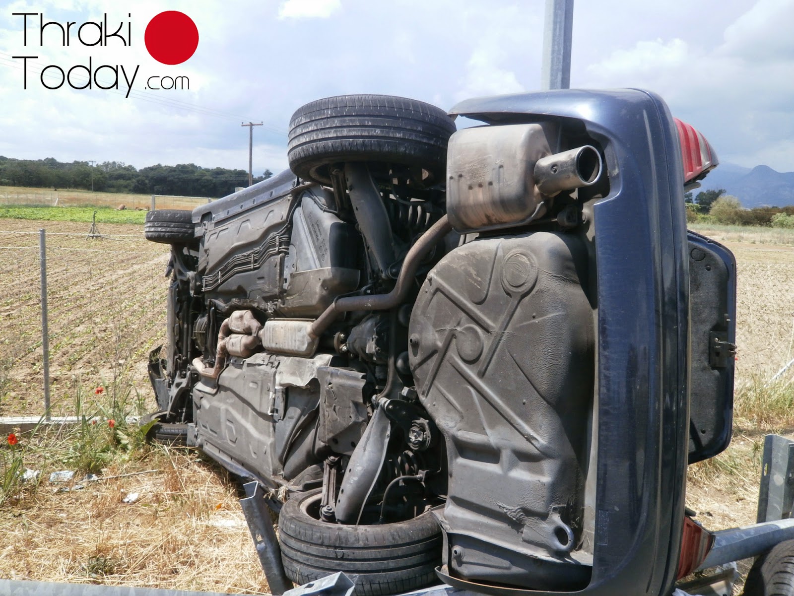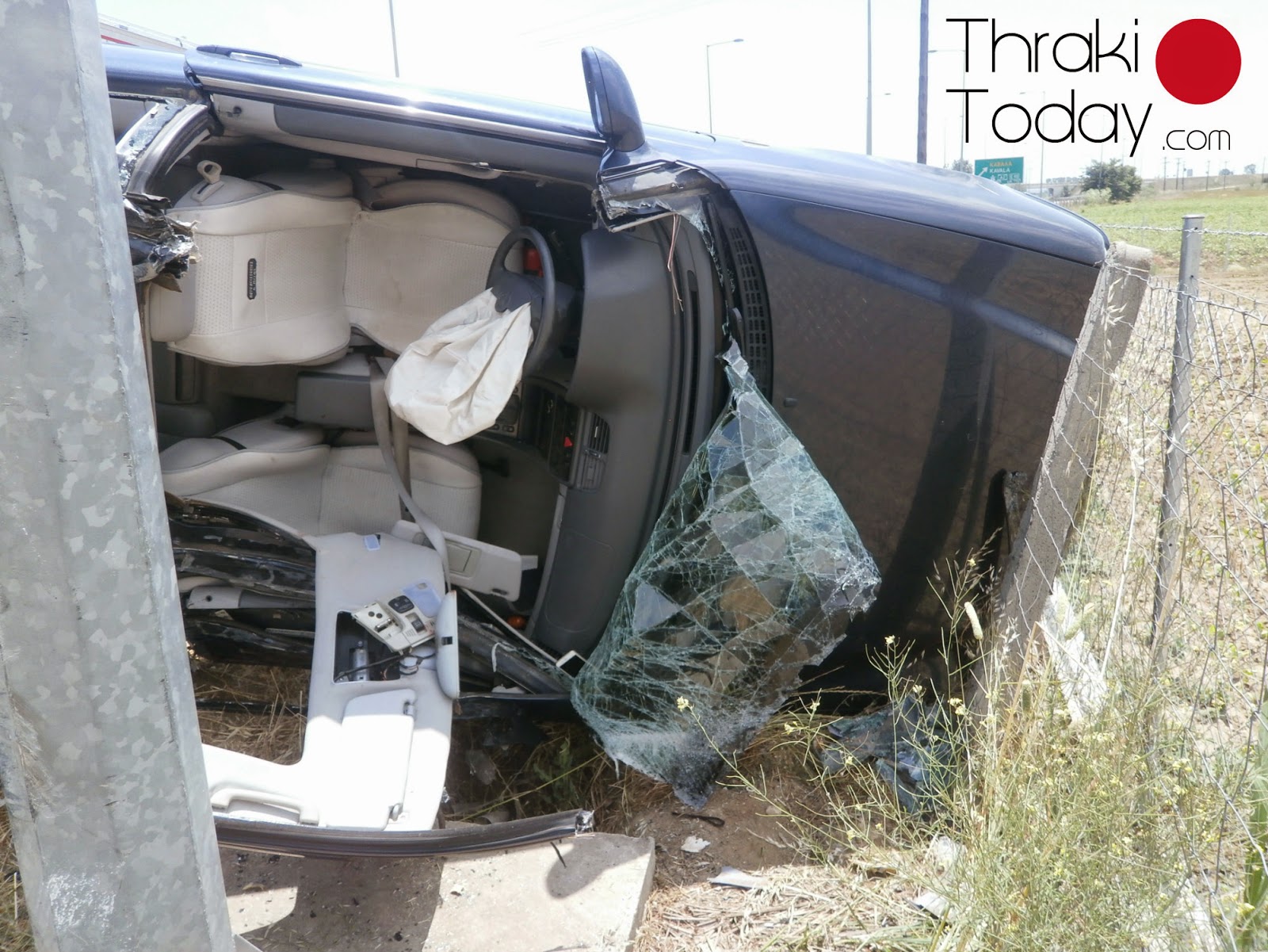 Από τη σύγκρουση το αυτοκίνητο ανετράπη, ενώ η τρελή του πορεία σταμάτησε πάνω σε μια κολόνα φωτισμού.