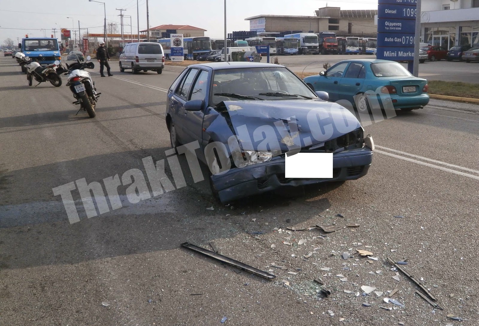 Ένα όχημα, κινούμενο στο ρεύμα με κατεύθυνση προς την πόλη, συγκρούστηκε πλαγιομετωπικά με άλλο Ι.Χ., το οποίο εκείνη τη στιγμή έβγαινε από παρακείμενη επιχείρηση.
