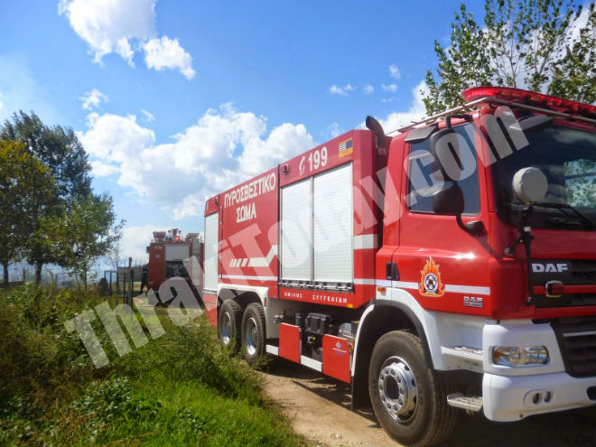 Αμέσως μετά την κατάσβεση, Πυροσβεστικό όχημα παρέμεινε στην περιοχή. υπό τον φόβο αναζωπύρωσης, λόγω των ανέμων που επικρατούσαν.