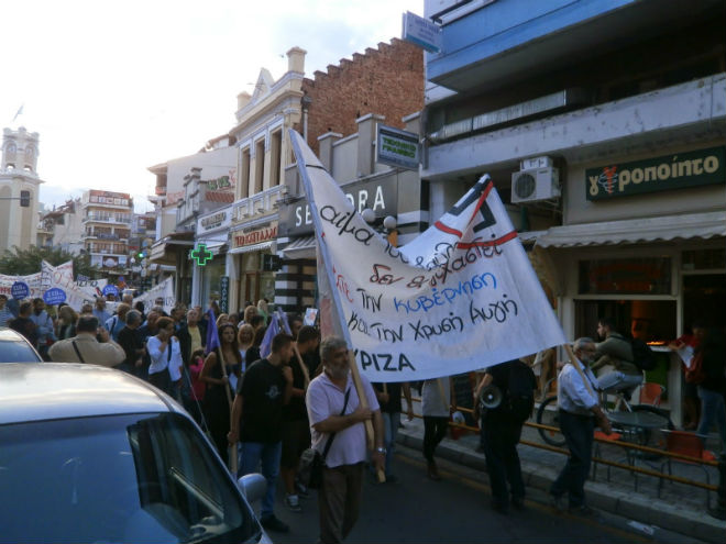 Οι δύο μάζες των διαδηλωτών βρέθηκαν λίγο πριν τις 19.00 στην Κεντρική Πλατεία απ’ όπου ξεκίνησε πορεία με κατεύθυνση την Παν. Τσαλάρη.