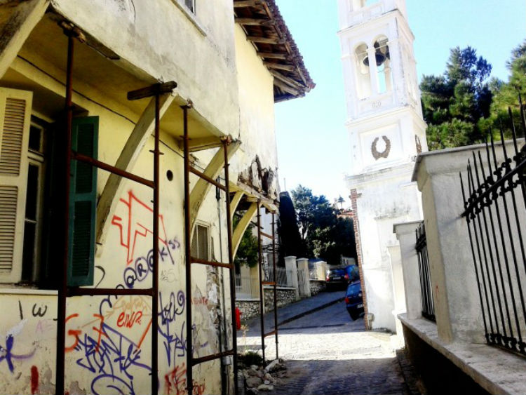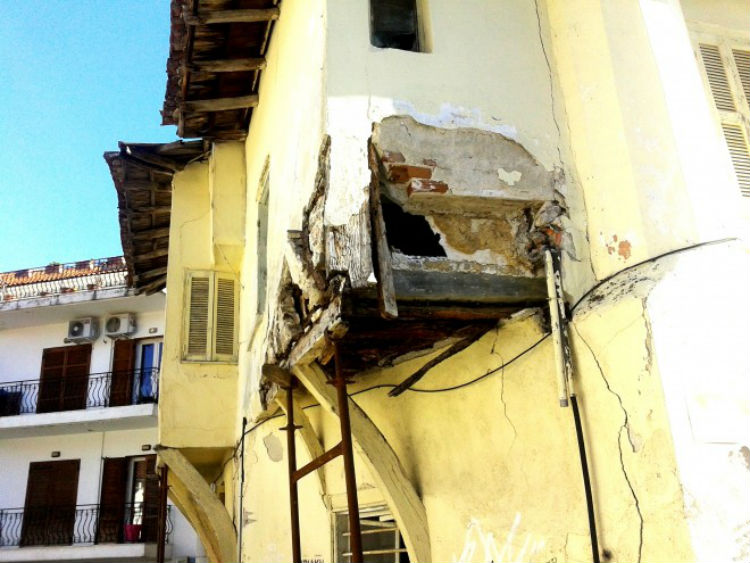 Σαν λαιμητόμος κρέμεται πάνω από τα κεφάλια των περαστικών ένα κτίριο στην Παλιά Πόλη της Ξάνθης.