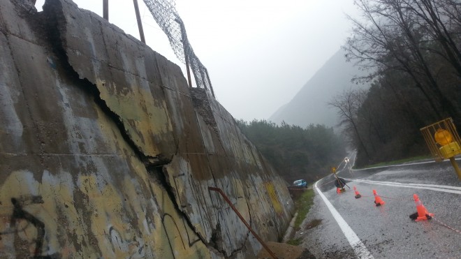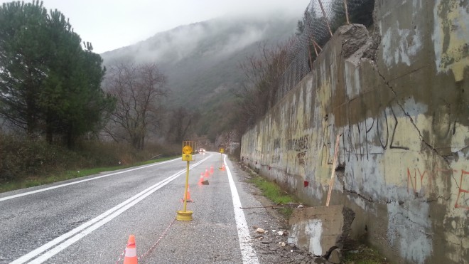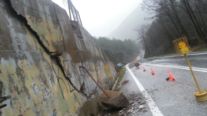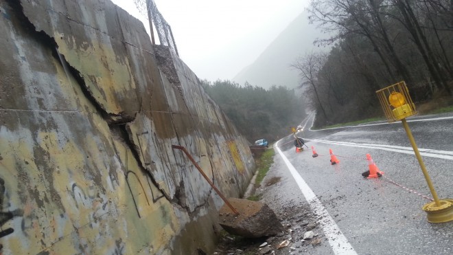 Ένας ιδιαίτερα μεγάλος βράχος αποκολλήθηκε και έπεσε στο οδόστρωμα. Ο βράχος συγκρατήθηκε από το προστατευτικό τοιχίο, αλλά στη συνέχεια και αυτό υποχώρησε και καταστράφηκε.