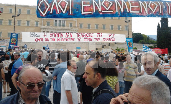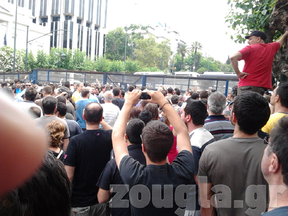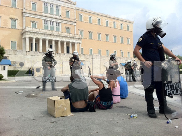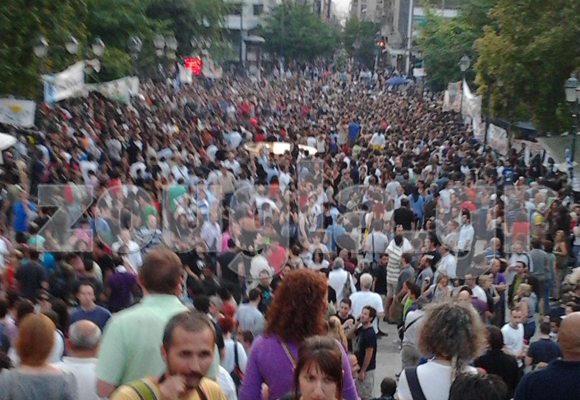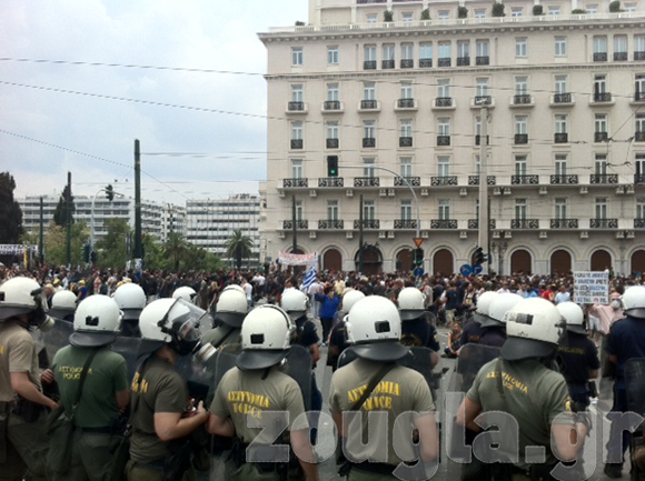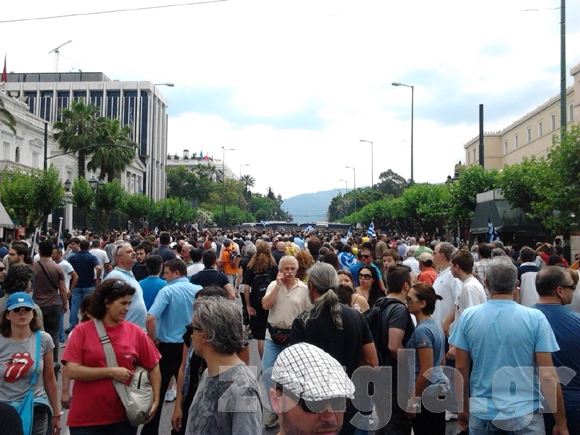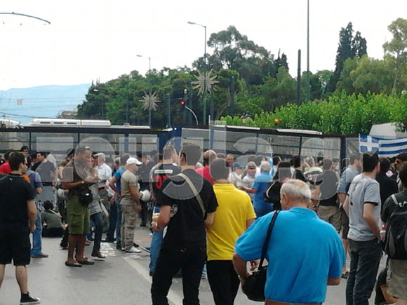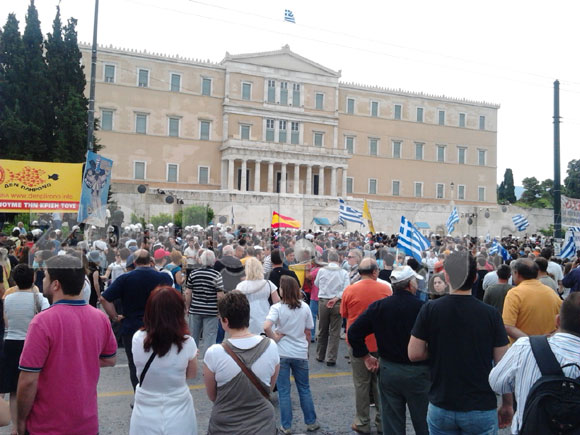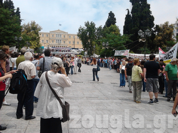 Ανταποκρινόμενοι στο σημερινό τους ραντεβού, 7.000 «Αγανακτισμένοι» βρίσκονται στο Σύνταγμα και η προσέλευσή τους, όσο περνάει η ώρα, γίνεται ολοένα και μεγαλύτερη. Υπάρχει κόσμος από το Σύνταγμα μέχρι και το Καλλιμάρμαρο και οι «Αγανακτισμένοι» δεν αφήνουν κανένα όχημα να περάσει.
