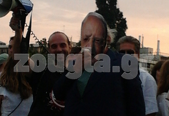 Ο συγγραφέας και σκηνοθέτης Δημήτρης Κολλάτος, φορώντας μία μάσκα που φέρει το πρόσωπο του Θ. Πάγκαλου, συμμετείχε στις διαδηλώσεις των «Αγανακτισμένων».
