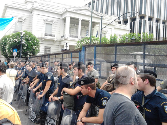 Μάλιστα, οι αστυνομικοί έχουν τοποθετήσει ένα τείχος φτιαγμένο από σίδερο και πλέξιγκλας, το οποίο κόβει τον δρόμο μπροστά από τη Βασιλίσσης Σοφίας και κάνει τη Βουλή απροσπέλαστη.