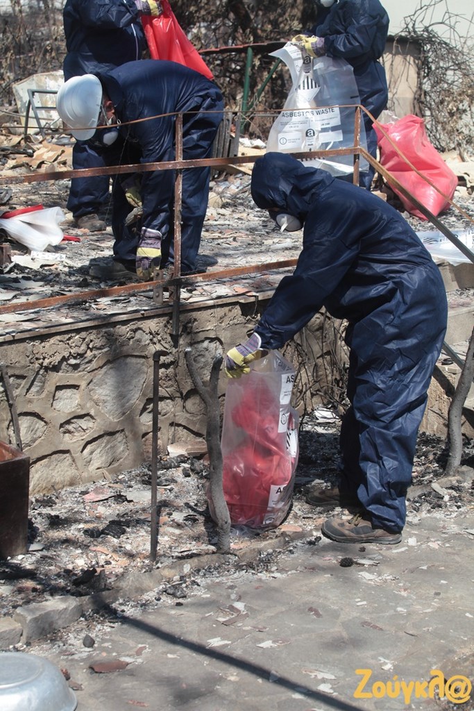 Φωτογραφίες και video από τα συνεργεία απομακρύνουν καμμένα ελενίτ και καμινάδες που αποτελούν εστία αμίαντου από το Μάτι: